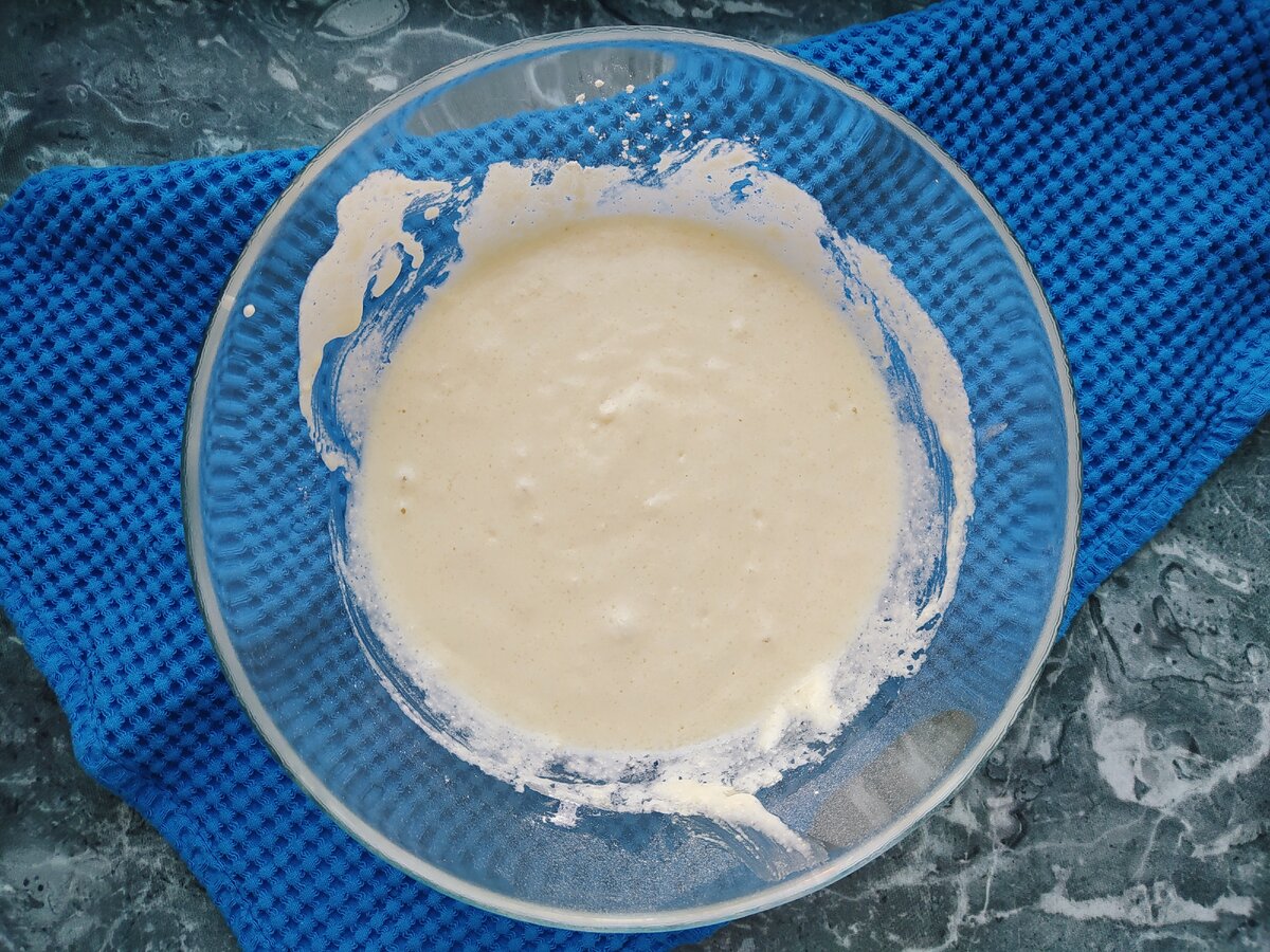 2. К сухой смеси вливаем растительное масло без запаха и воду. Перемешиваем и оставляем на 10–15 минут.