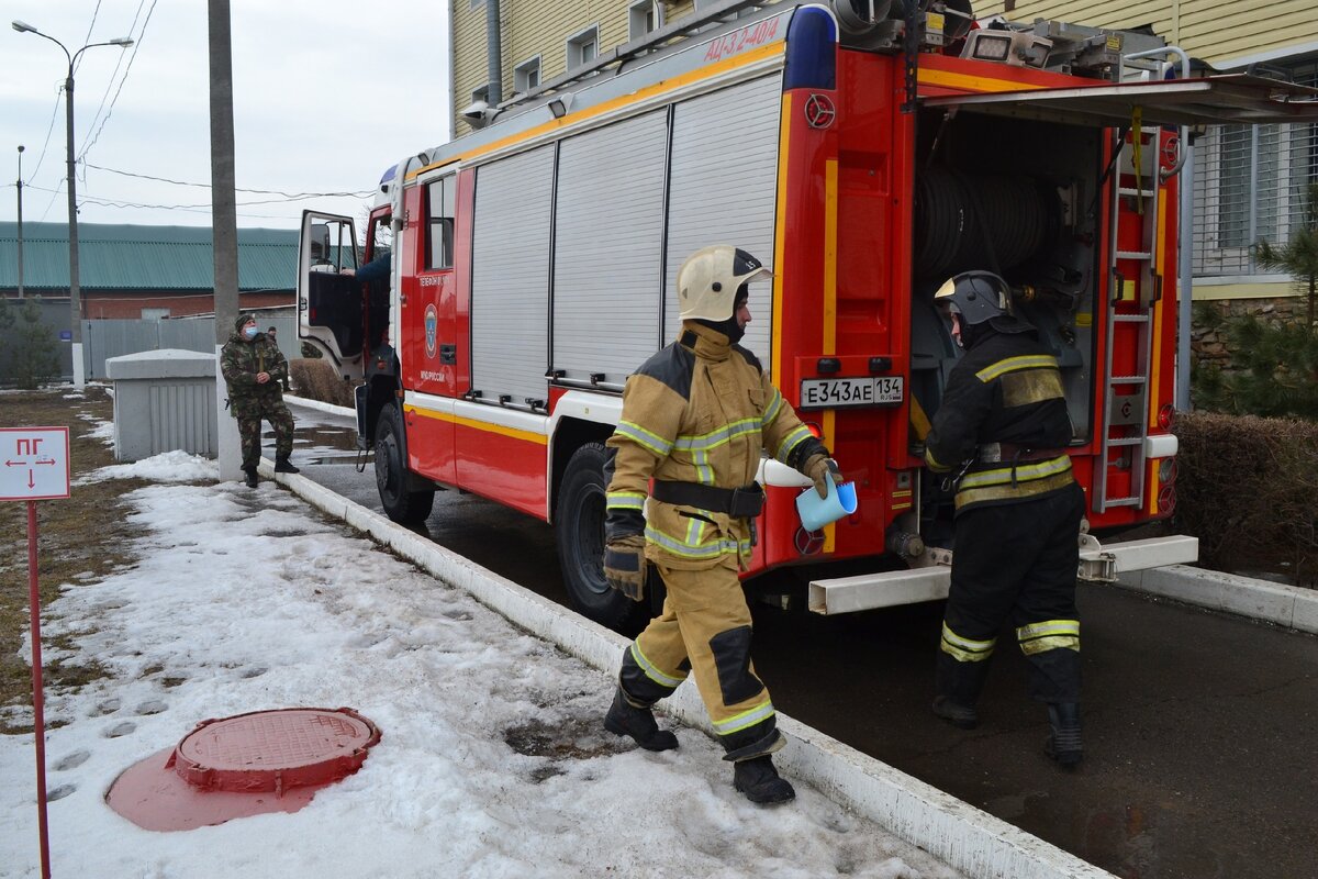 На базе отряда состоялась тренировка по эвакуации личного состава при возгорании, отработка действий нештатного пожарного расчета и взаимодействие между ведомствами. Кроме того, отработан план по спасению людей, отрезанных огнем без возможности