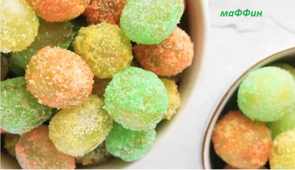 Если вы любите кислые конфеты, вас ждет настоящее удовольствие - в буквальном смысле! Этот кислый замороженный виноград на вкус шокирует. Рецепт состоит из свежего зеленого винограда, обваливаемого в соке лайма или лимона, и ароматного желатина, в результате получается увлекательная и яркая закуска. Хотя в этой версии все еще есть немного сахара, это значительно меньше, чем в настоящей. Получите свою конфету с этим кислым замороженным виноградом.