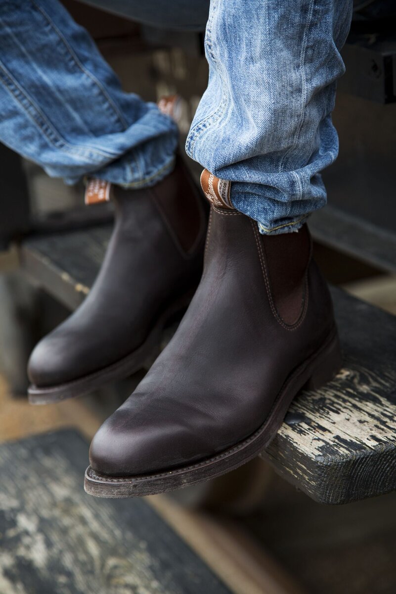 Хорошая пара ботинок всегда выглядят практично и стильно. Идеально подходят под это описание ботинки челси. Если ты относишь себя к числу стильного мужчины, то просто обязан приобрести себе челси. Они отлично сочетаются как с джинсами, так и с вельветовыми штанами (например, модель Gardener от известной компании R.M.Williams , которые, к слову, невероятно удобные). Одна вещь, о которой следует помнить при выборе ботинок челси (да и любой другой обуви), заключается в том, что их пропорции должны соответствовать пропорциям твоих брюк: узкие ботинки хорошо смотрятся именно с узкими брюками.