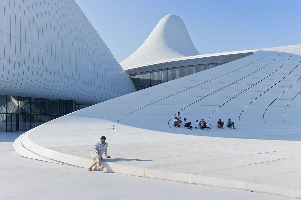 В проекте практически нет прямых линий, он символизирует одновременно стремление ввысь и слияние с землей. Это вечное движение, вдохновленное подписью президента Гейдара Алиева. Плавность форм снаружи и внутри, футуристичная главная лестница и современные выставочные экспонаты — все едино. Внутри — интерактивное музейное пространство с экранами, планшетами и инфокиосками. Центр Гейдара Алиева считается одной из главных достопримечательностей современного Баку.