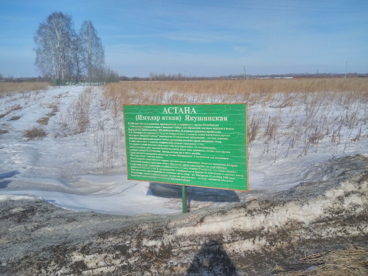 Про первую астану близ поселка Якуши, где захоронены мужчины первые мессионеры Ислама, рассказывал ранее. Сейчас расскажу о астане Якушинская 2. Находится совсем рядом. Но там похоронены женщины. Сподвижницы первых миссионеров. Данный некрополь находится в поле у Якушей. Внизу на спутниковом снимке вы увидите рядом обе астаны. Он включен в число региональных памятников историко-культурного наследия и в документах назвается "Астана Якушинская-2". Имена захороненных здесь людей стерты из памяти временем. Астана известна с давних времен как место упокоения первых исламских миссионеров, пришедших в Сибирь по распоряжению шейха Багаутдина из Бухары. Но в народе известно что тут хоронили женщин первых миссионеров. Женщины похоронили своих мужчин на астане Якушинская 1. А их самих уже хоронили на Якушинской 2. Оградка построена 10 декабря 2008 года. В 1394 году 366 мусульманских проповедников из суфийского ордена Накшбандиа и 1700 воинов совершили поход в Западную Сибирь для обращения местных
