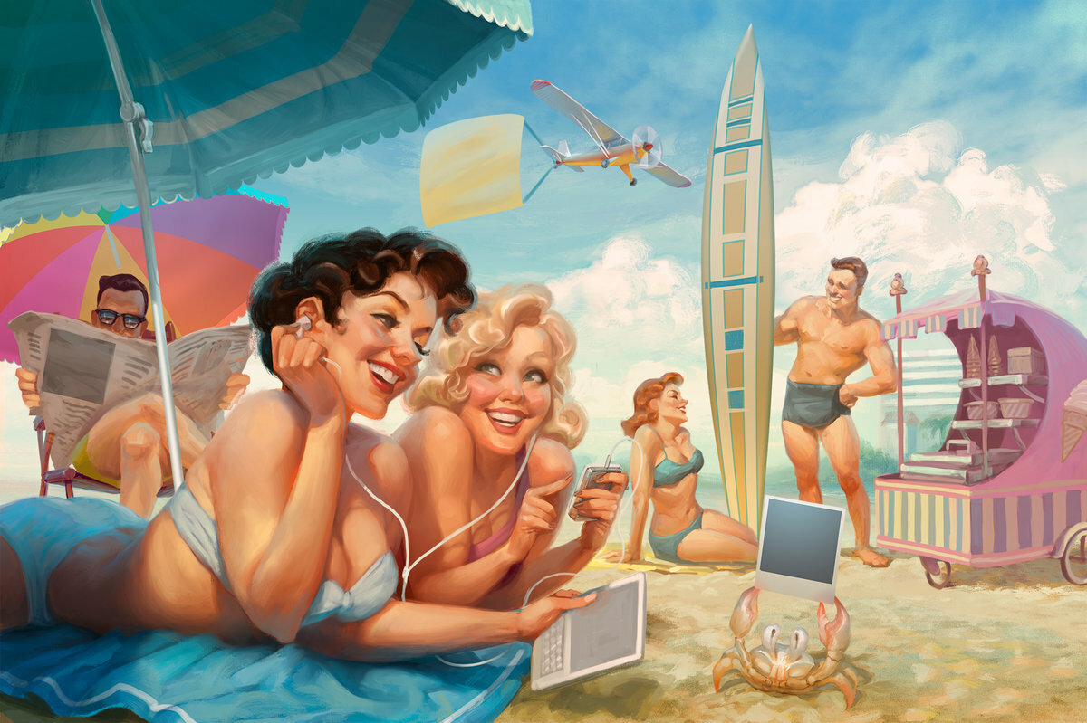 — Не могу разговаривать, я на море!
