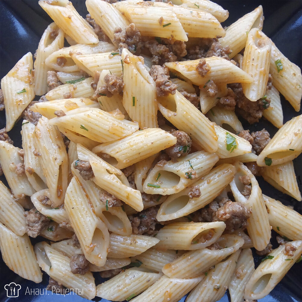 К этому времени макароны уже успели свариться. Соединяю фарш с макаронами, хорошенько перемешиваю и все - ароматное блюдо готово, можно подавать.