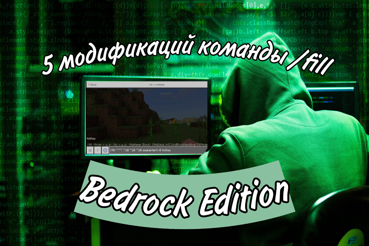 Команды... Команды! Для многих игроков, даже имеющих немалый игровой опыт, эта тема является достаточно проблемной и окутанной мраком. Прямо как и редстоун-схемы. Сразу скажу: я не исключение из этих людей. Конечно, наверное каждый умеет пользоваться простыми командами, такими как: Но ведь игра не ограничивается лишь ими: разработчики подготовили для нас огромное количество полезных (и не очень полезных) команд, владение которыми, по сути, сделает Вас настоящим "богом" Майнкрафта! Но не всё сразу! Сегодня я расскажу о команде /fill и её модификациях. Warning! С этого момента и на протяжении всей статьи слово "КОМАНДА" будет встречаться в огромном количестве. Увы, синонимов у данного слова практически нет, так что придётся с этим смириться. 0. Сама команда /fill Для тех, кто не знает, эта команда заполняет выделенную область определённым блоком (полностью). Имеет она такой синтаксис: /fill <from: x y z> <to: x y z> <tileName: block> [tileData: int] [oldBlockHandling: F