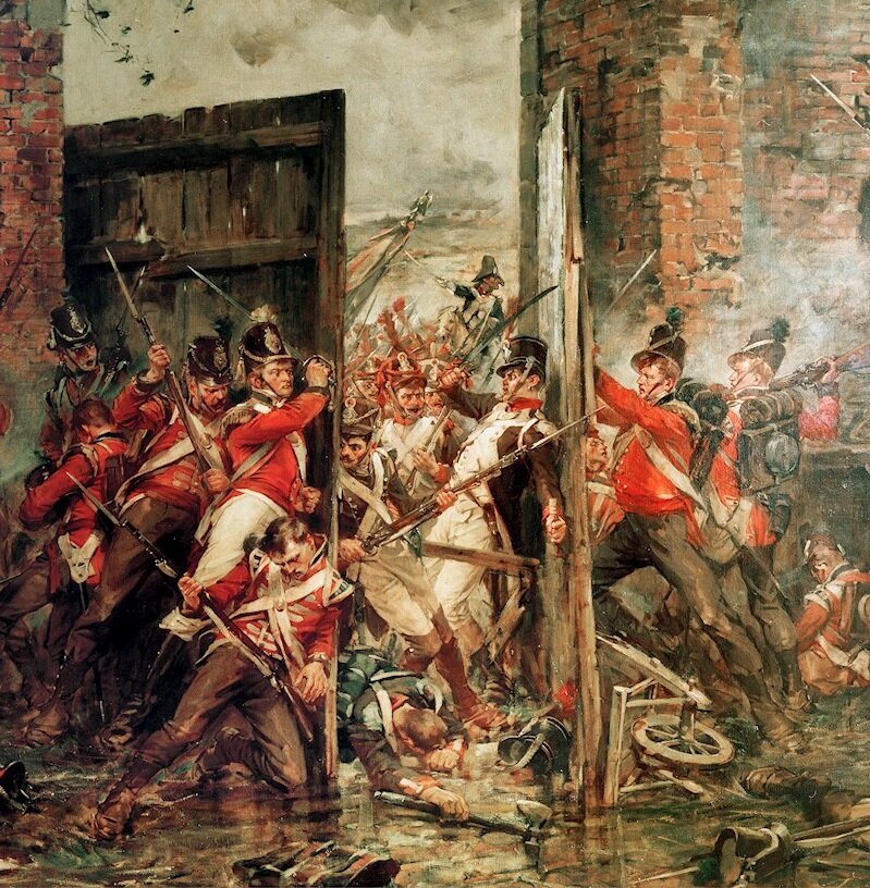 В то время, как колонны генерала Д’Эрлона сражались на высотах Мон-Сен-Жан, штурм Угумона только набирал силу. Атака, задуманная как отвлекающий маневр, превратилась в маленькое локальное сражение, затянувшее в огненное горнило три пехотные бригады. Лес и фруктовый сад по нескольку раз переходили из рук в руки. Пространство вокруг замка наполнилось звуками нескончаемой перестрелки, лязгом штыков, истошными криками раненых и отрывистыми командами офицеров.