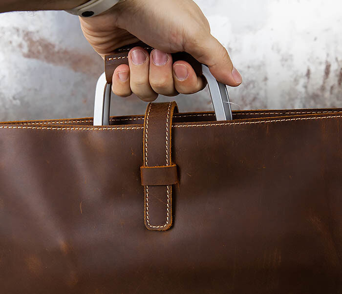 Портфель для бумаг из толстой кожи высокого качества. Грубая кожа с матовой, слегка шершавой структурой, на ней будут оставаться красивые следы от предметов, которые будут постепенно затираться. Величественный, винтажный вид портфель будет только приобретать со временем.