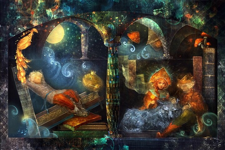 Серебристой звёздной пыльюВечер сыплется чудесный.Между небылью и быльюГде граница - неизвестно...Бродит сказка по дорожкам,Ввысь жар-птицею взлетает,В полуночное окошкоСны цветные наметает...