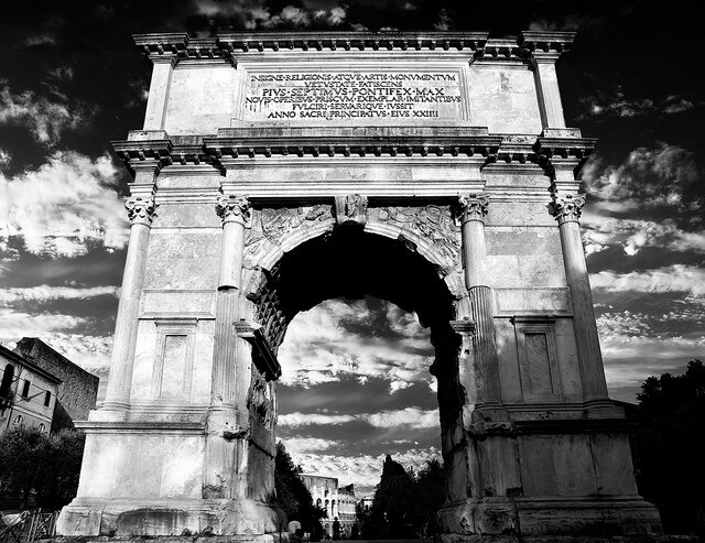 Это сооружение восхваляет триумф императора Тита (того самого, кто вместе со своим отцом императором Веспасианом, построил Колизей) над неверными иудеями. В 70 г. н.э. после длительной осады Иерусалима, Тит и его армия захватили в плен тысячи евреев и полностью разрушили богатый драгоценными сокровищами храм Соломона.