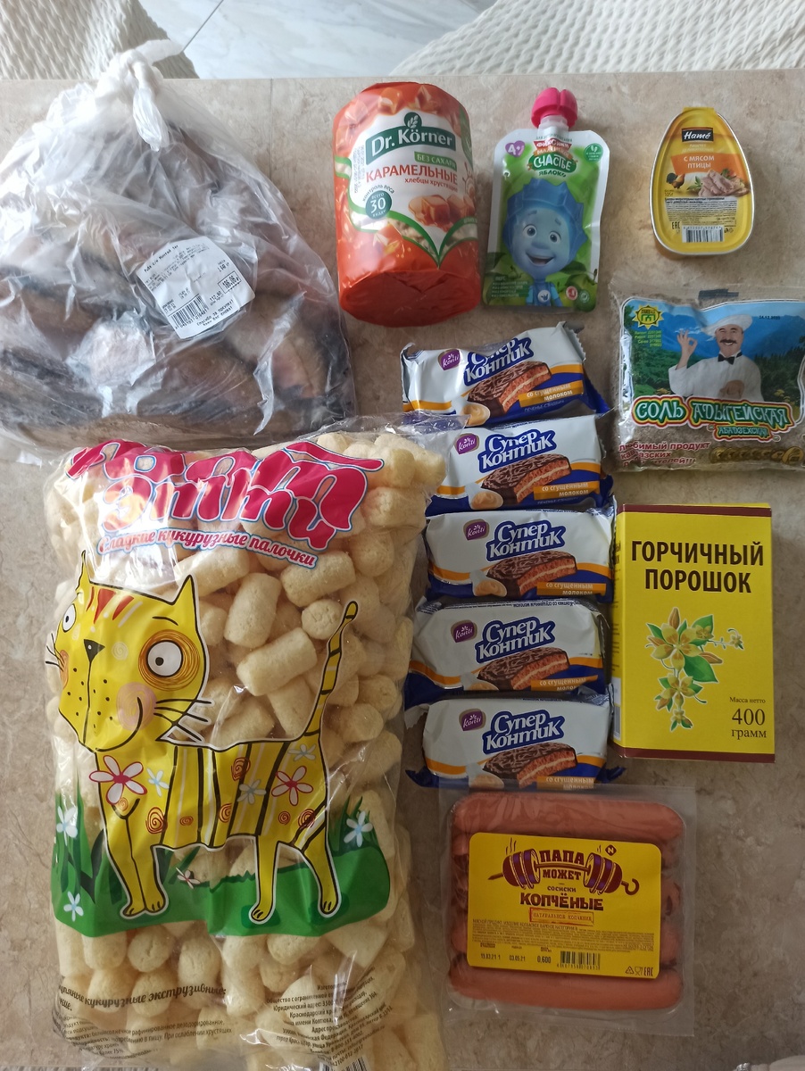 Огромный пакет с кукурузными палочками нам обошёлся в 45 рублей. Они несильно обсыпаны, но на вкус оказались вполне нечего.