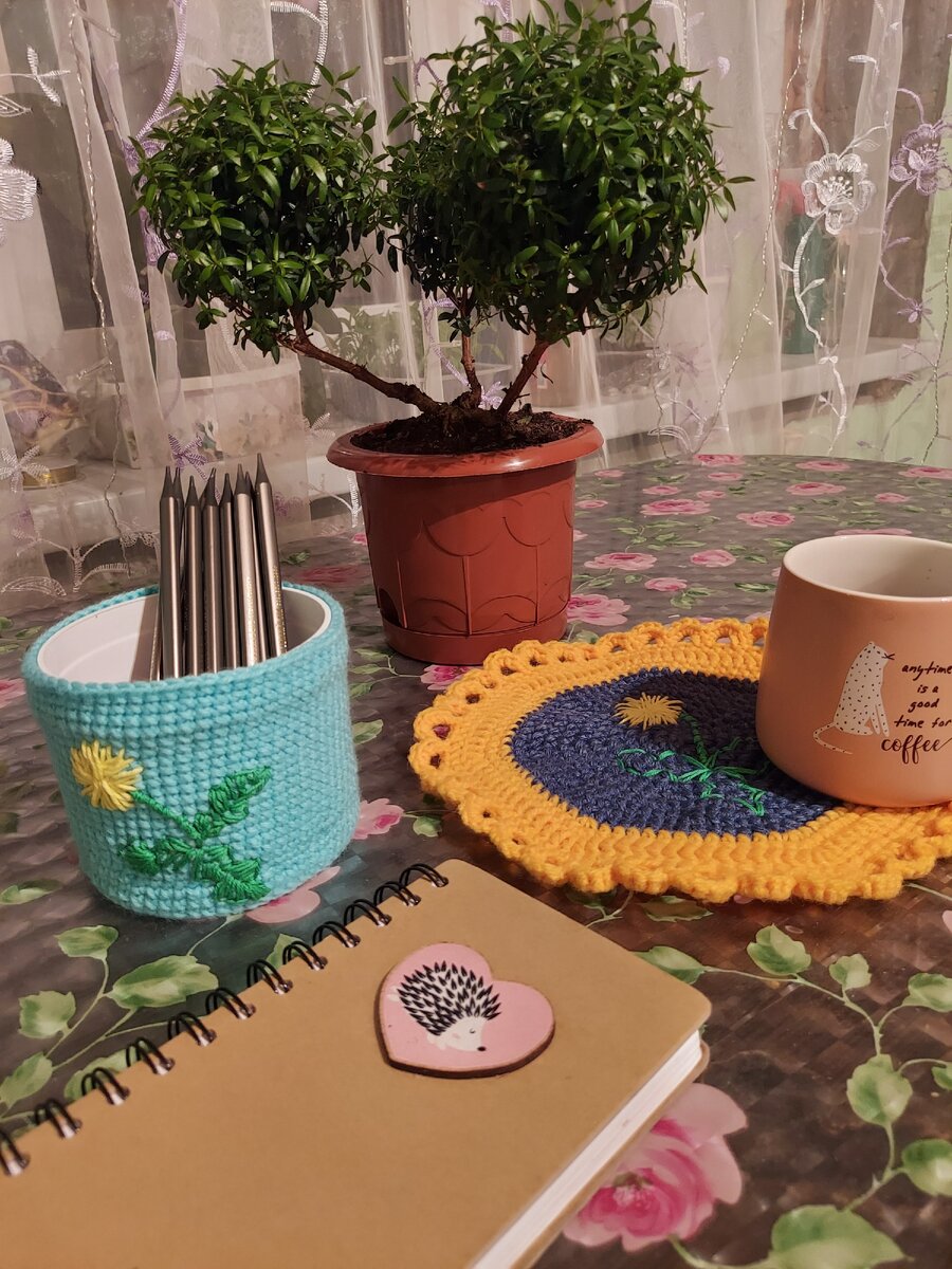 Дочке нужно было на каникулах сделать проект на технологию. Что - то функциональное и своими руками. Думали долго, но получилось очень уютно, планируем сделать комплект.