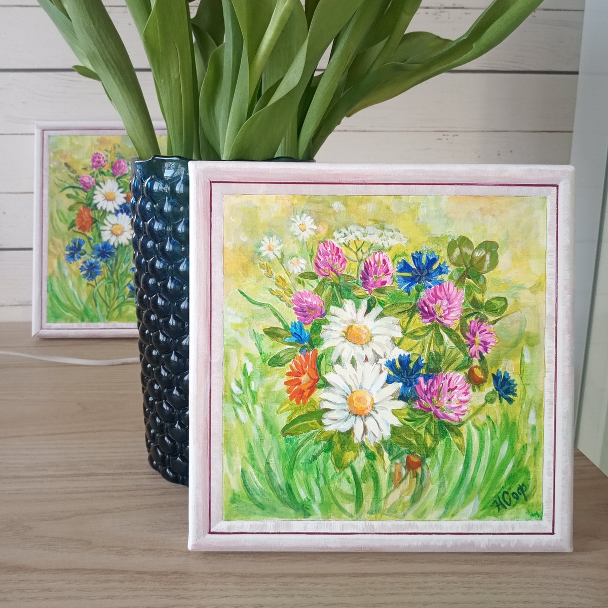 Сначала медленно и неохотно пошёл - всё же сколько лет не живописала. Но я же по профессии архитектор-дизайнер интерьера, а архитекторам любые трудности по плечу. Луговые цветы меня увлекли. Я их так и назвала "Луговые цветы Прованса".