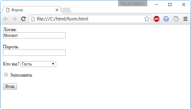 В браузере веб-форма будет выглядеть, как на рисунке ниже.