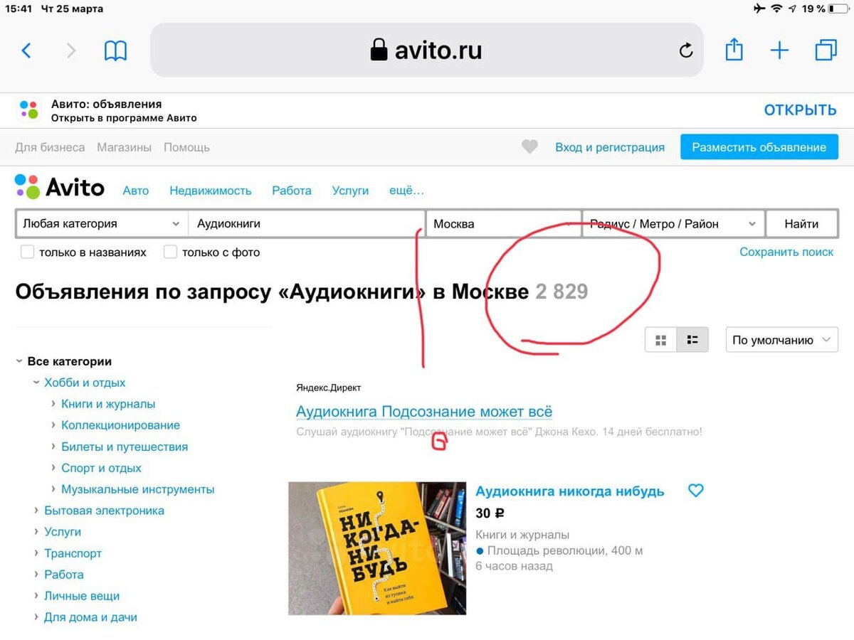 На днях сервис объявлений Avito сообщил, что с 1 апреля перестает размещать информацию о продаже аудиокниг, а также электронных версий книг и материалов онлайн-курсов. Неужели и там есть пираты, перепродающие ворованный цифровой контент, с которыми приходится бороться? Оказывается, есть, и немало. Пираты не брезгуют любым заработком, предлагая одну аудиокнигу за 20-30 рублей, а целую библиотеку – за 1000 рублей. Заплатив требуемую сумму, покупатель получает ссылку на скачивание и даже консультацию, как загрузить звук в свой смартфон.