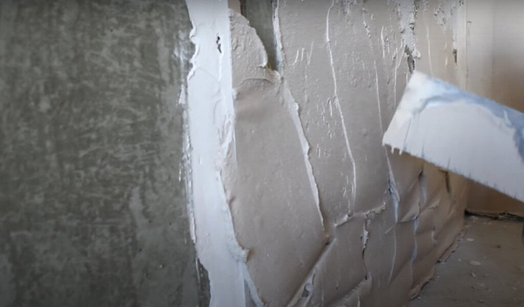 Шпатлёвка, в отличие от штукатурки, имеет более мелкую структуру и легко поддаётся шлифовке, поэтому чаще используется для финишного выравнивания. Перед нанесением шпатлёвки поверхность грунтуют. Шпатлёвку следует наносить после полного высыхания грунтовки.