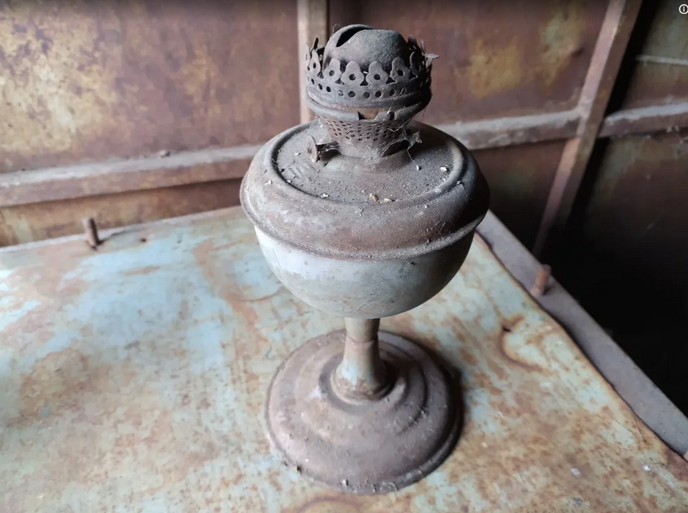 Керосинки были в каждом доме, а потому до наших дней их сохранилось очень большое количество. Вот такой экземпляр я откопал у себя в сарайке. Понятия не имею, откуда эта керосинка там вообще взялась. А может быть просто забыл.