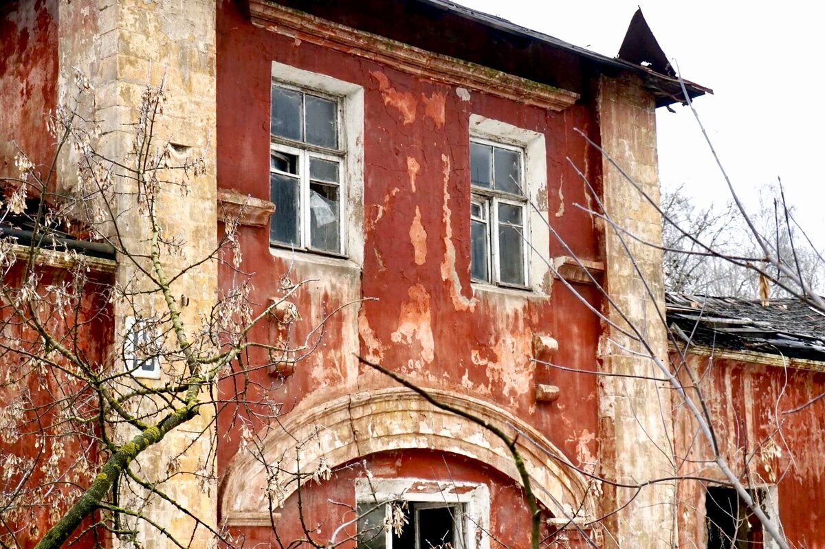 Бывший въездной корпус усадебного конного двора. Ещё недавно в нём жили люди, можно сказать что и сейчас живут, только на этот раз бомжи.