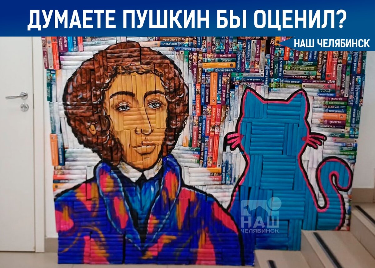 В одном из челябинских книжных магазинов на на стопке из полутысячи нераспроданных книг нарисовали портрет Александра Пушкина. Для инсталляции использовались книги, которые не могли продать уже много лет.