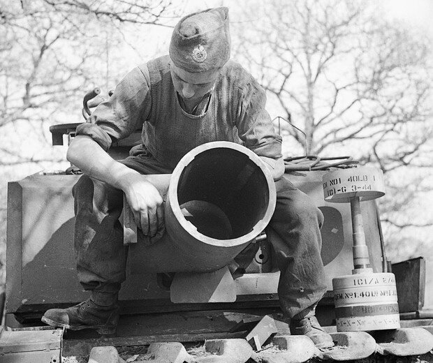 Боевые качества тяжелого английского танка «Черчилль» не шли ни в какое сравнение с лучшими немецкими и советскими танками. Но по крайней мере специальный осадный вариант танка реально нагонял ужас на немцев. Испугаешься, когда к тебе приближается такая посудина с таким огромным орудием. Инженерный Churchill AVRE оснащался 290-миллиметровым минометом, один грозный вид которого порой обращал оборонявшихся в бегство.