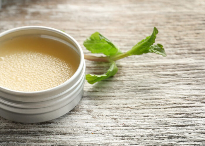 Твердое масло топим на водяной бане, добавляем воск и перемешиваем до однородной массы. Добавляем в остывшую, но еще мягкую смесь эфирные масла и перекладываем в удобную баночку.