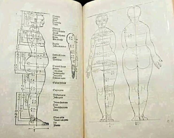 Идеальные пропорции женского тела по версии немецкого художника Альбрехта Дюрера – начало 16 века.