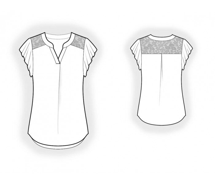 РЕКОМЕНДАЦИИ ПО ВЫБОРУ ТКАНИ: блузочные ткани из натуральных или смесовых волокон. Кружевная ткань для отделки.