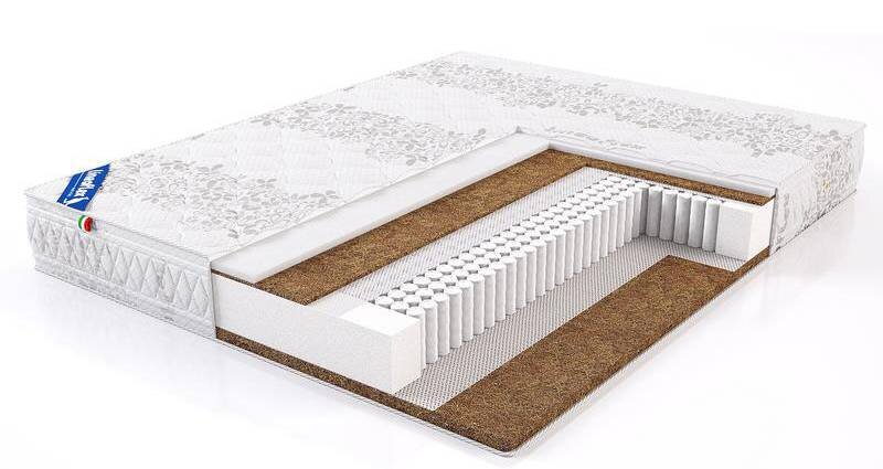 Матрас беспружинный. За счет латекса, содержание которого очень высоко, обеспечивается устойчивость к нагрузкам. Чистая экологическая продукция. Нагрузка рекомендуется не более 50 кг. Благодаря жесткости кокосового наполнителя имеет хорошие ортопедические свойства.