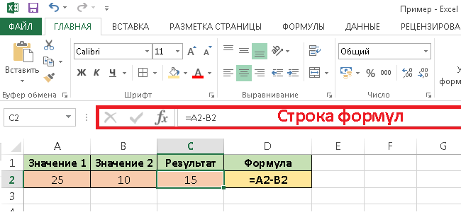 Когда вы вводите формулу в ячейку, она также появляется на панели формул . Чтобы увидеть формулу, выберите ячейку, и она появится в строке формул.