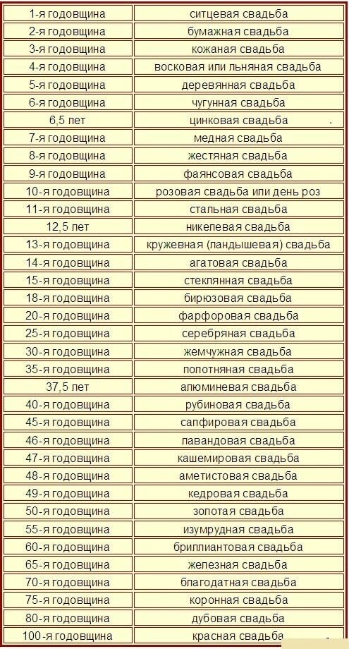 Годовщины свадьбы по годам: список, названия, подарки и поздравления.