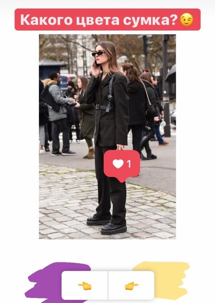 Итак, первый образ, который мы видим на фото, тотал-блэк. Как мы помним, с черным сочетается абсолютно любой цвет, однако...Какой вариант выбрали бы вы?
