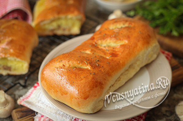 Выпекать на среднем уровне разогретой до 180 градусов духовки. Примерное время приготовления – 25-35 минут, в зависимости от особенностей вашего духового шкафа. Кулебяка с картофельно-грибной начинкой получается очень вкусной и питательной.