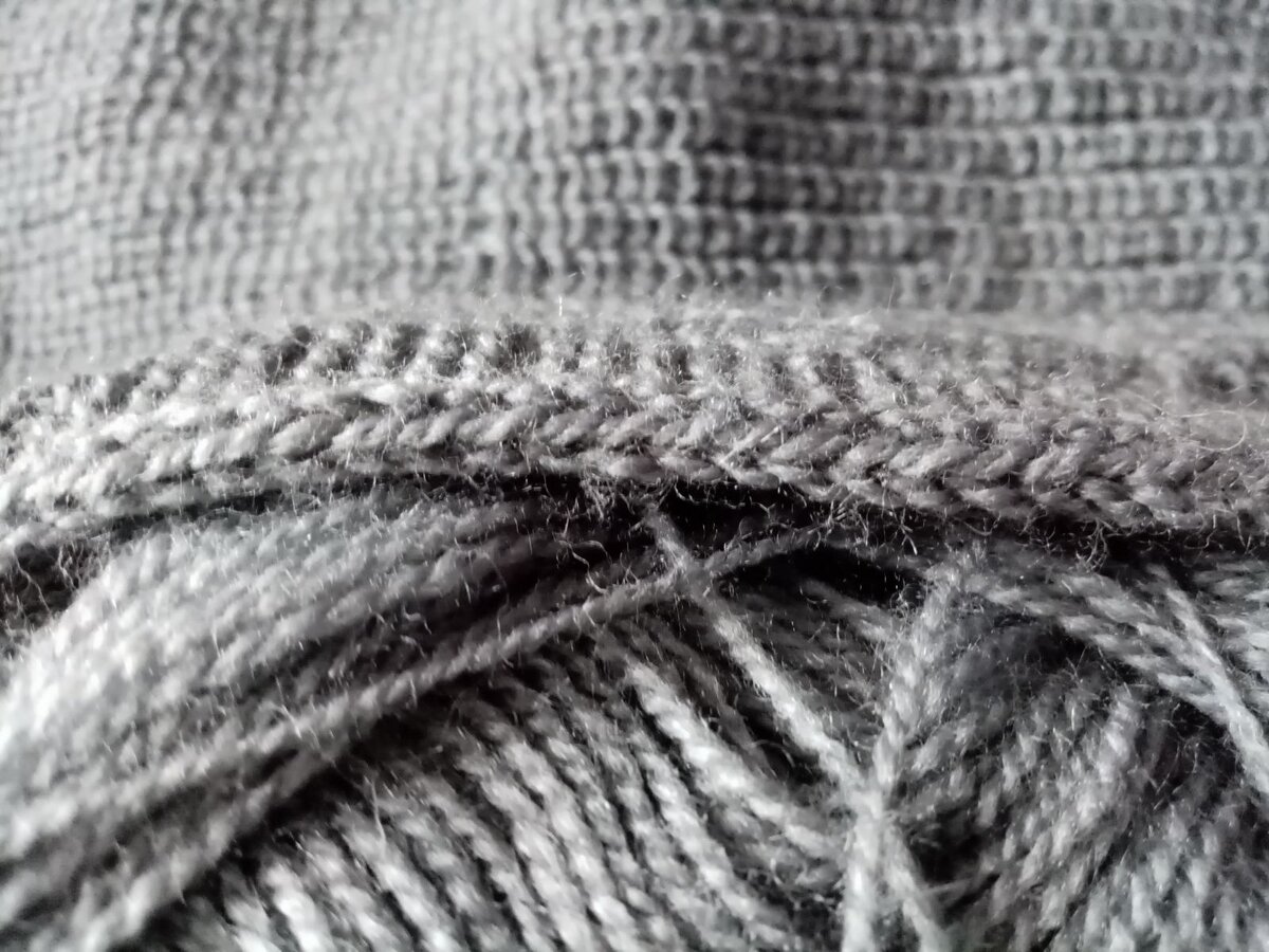 2 ряд – 2 лицевые, снятую петлю провязать изнаночной за заднюю стенку, 6 лицевых, снятую петлю провязать изнаночной за заднюю стенку, кромочная.