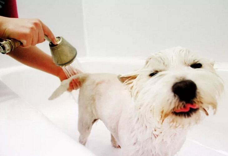 Так как на улице полным-полно грязи и мусора, у щенка могут появиться кожные заболевания, вызванные паразитами (такими, как блохи и клещи). Поэтому первым делом необходимо помыть его с шампунем от блох и паразитов, предназначенным специально для животных. На дно ванны нужно постелить резиновый коврик, чтобы лапы щенка не скользили по дну.