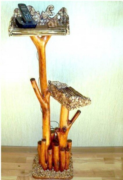 Дочь попросила изготовить полочку для домашнего телефона. Основное требование — изделие должно быть оригинальным и обязательно коричневого цвета, чтобы подходило к интерьеру прихожей. Смастерила предмет декора из подручных природных материалов. Своей идеей делюсь с вами.