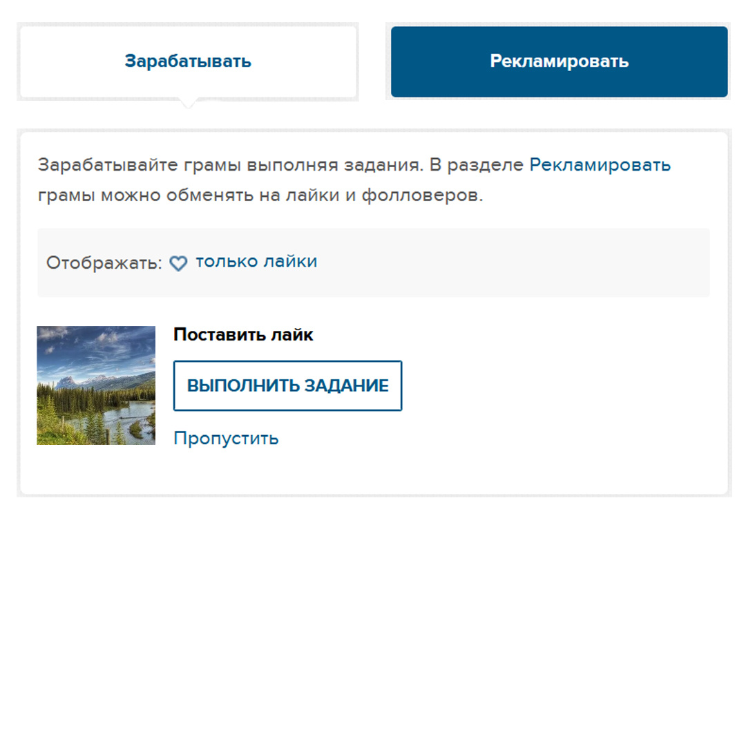 Один из первых сайтов, который я попробовала для обмена лайками 1gram.ru