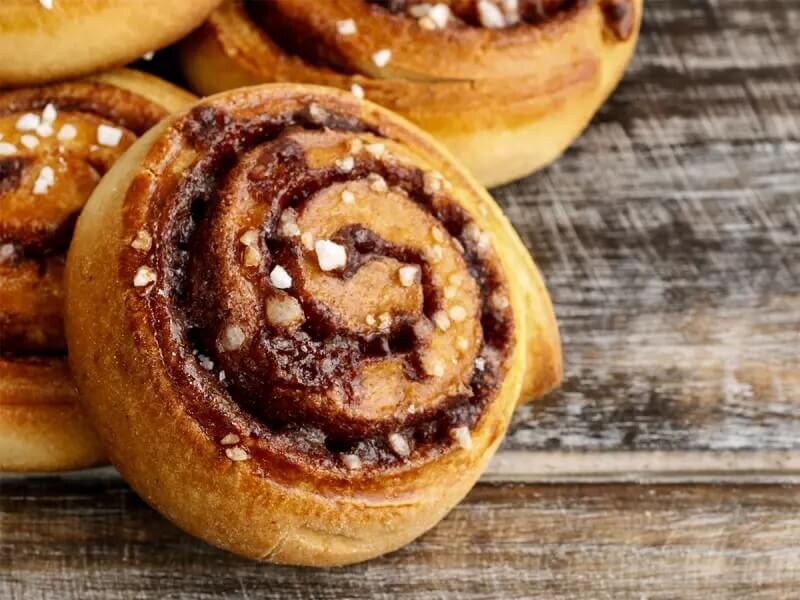 Булочки нужно выпекать в разогретой духовке примерно на 20 минут, пока они не приобретут красивый золотистый цвет. Помимо корицы и сахара в начинку можно добавить любимые орехи или изюм.