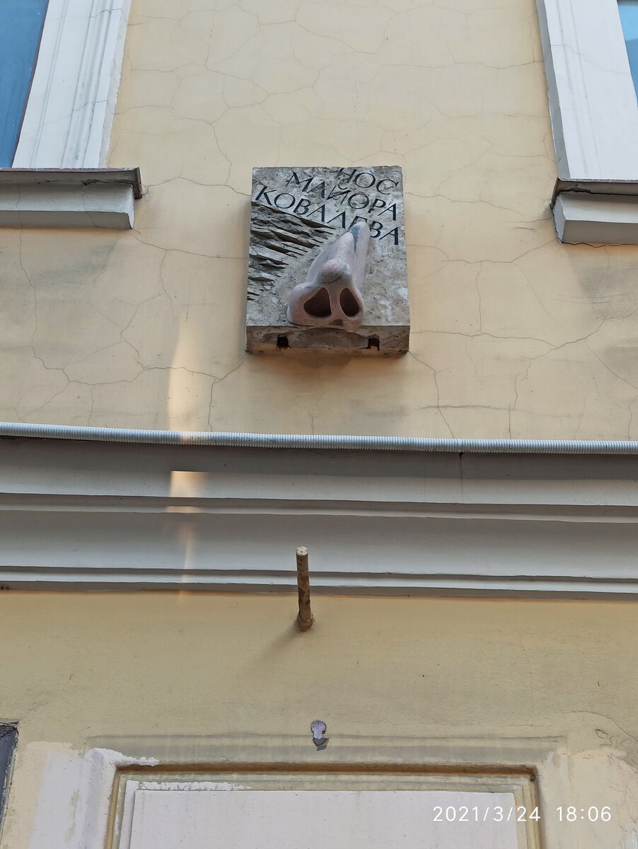 На фасаде дома № 36/11 по Вознесенскому проспекту при пересечении с проспектом Римского-Корсакова расположился ни много ни мало «Нос майора Ковалёва».
