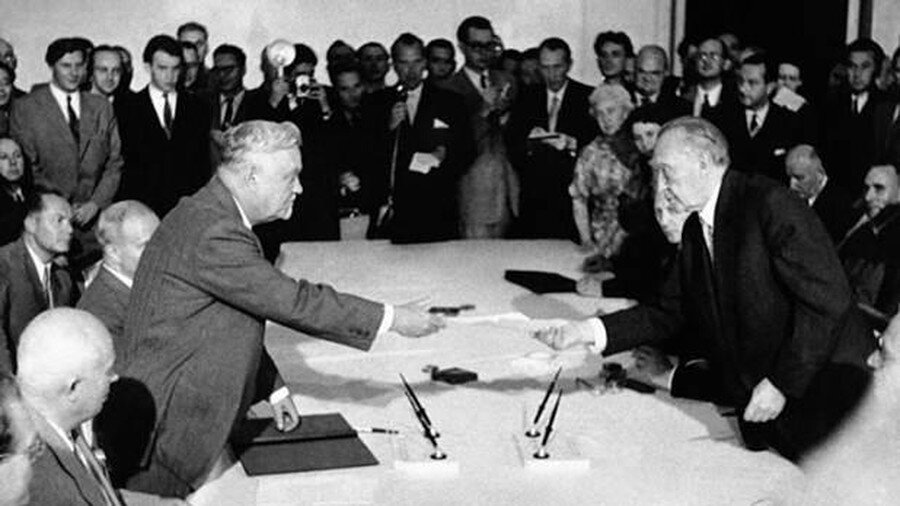 В Кремле наконец осознали тщетность попыток объединения Германии и в январе 1955 года вышел знаменитый указ о перемирии. В частности, он снимал с немцев как граждан враждебного государства все ограничения. Иными словами, все пленные немцы, находившиеся в СССР и участвовавшие в восстановлении экономики, могли вернуться домой. Однако был у указа и серьезный политический эффект. ГДР признавалась суверенным государством и стране разрешалось иметь собственную армию, что в условиях Холодной Войны становилось серьезным подспорьем для социалистического лагеря.