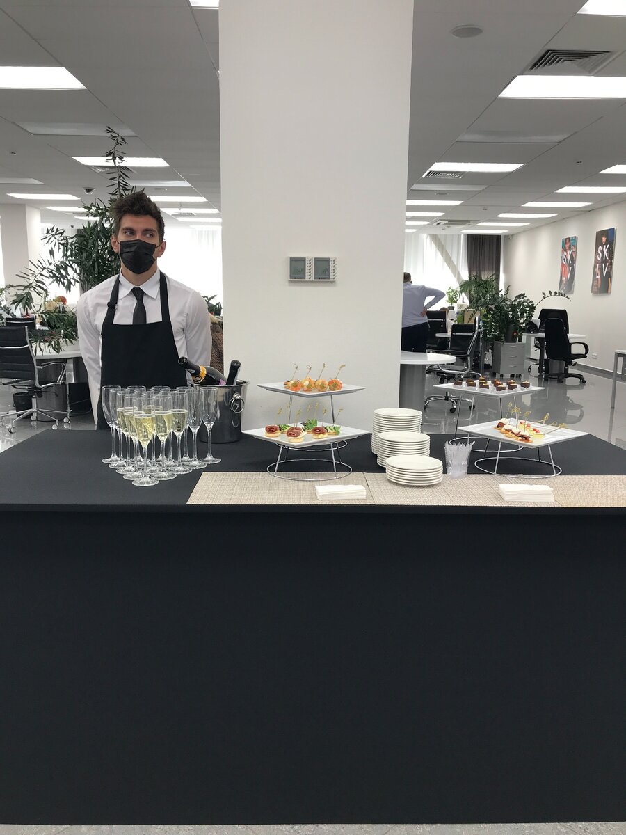 О мусоре, который всегда остается после гостей, аккуратно сложенным в пакеты клининговой компанией: это стеклянные бутылки из-под напитков, пластиковые подносы из-под закусок, картонные коробки и пр.