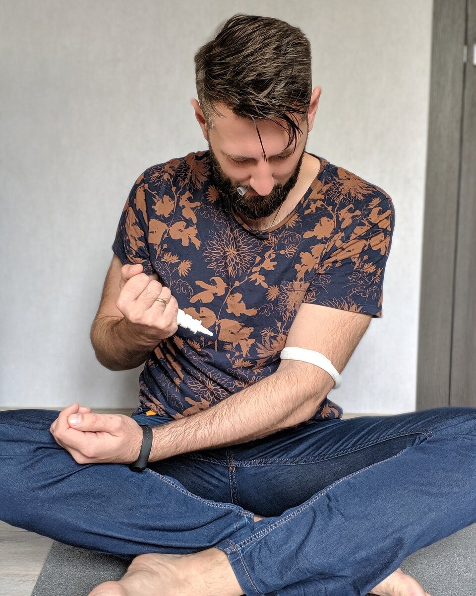 Нету. И в сумке тоже. "Да чтоб тебя!"- ругаюсь и с последней надеждой поворачиваюсь в сторону куртки. Во внутреннем, нахожу заветный флакон. Трясу. Делаю два захода в нос. Выкидываю использованную пластмасску в урну. И удовлетворённый ложусь спать.⠀