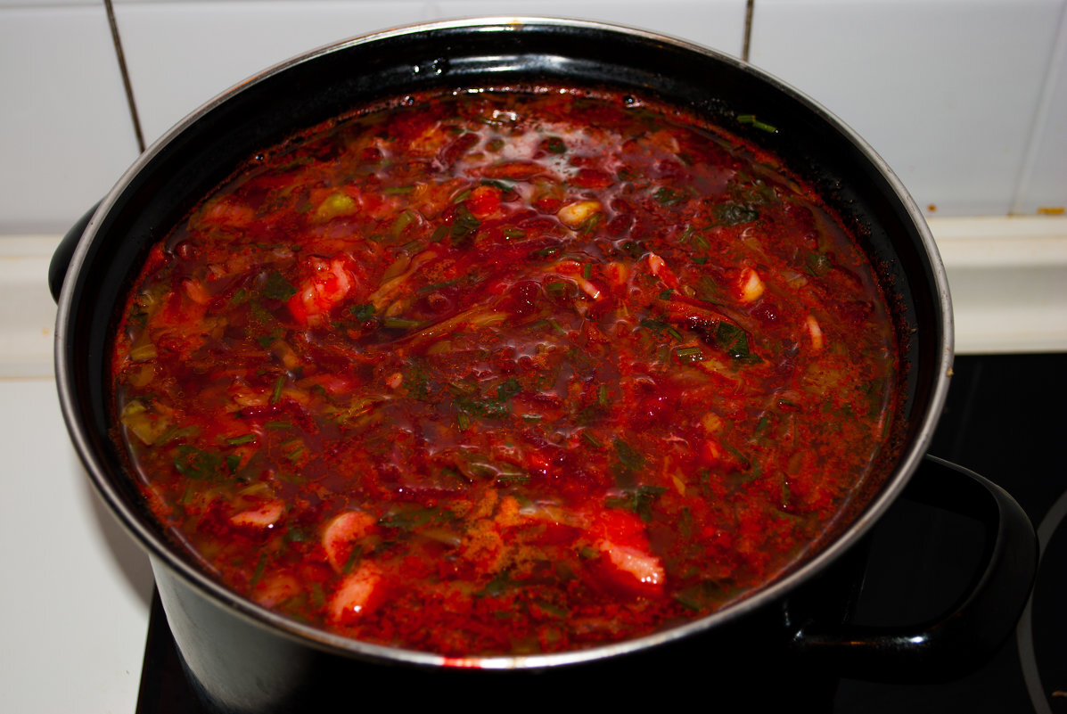 Ps: Старайтесь борщ,не переварить,чтобы он оставался,насыщенным,красным цветом!