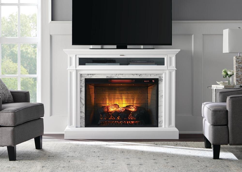 Выбирая электрический камин для дома, важно решить, хотите ли вы камин, медиа или настенное крепление . Камины напоминают традиционные камины и могут придать им особый вид. Камин, изображенный выше, имеет белую отделку с обрамлением из искусственного каррарского мрамора, что придает вам очень классический вид, который, по мнению большинства людей, был оригинальным для дома.