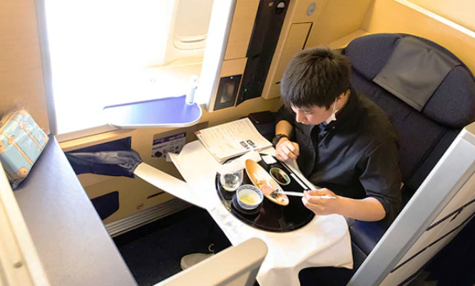 Фуа-гра, мусс из крабового мяса и говяжье филе вагю - все это есть в меню на борту самолета японской авиакомпании All Nippon Airways за немалые 540
