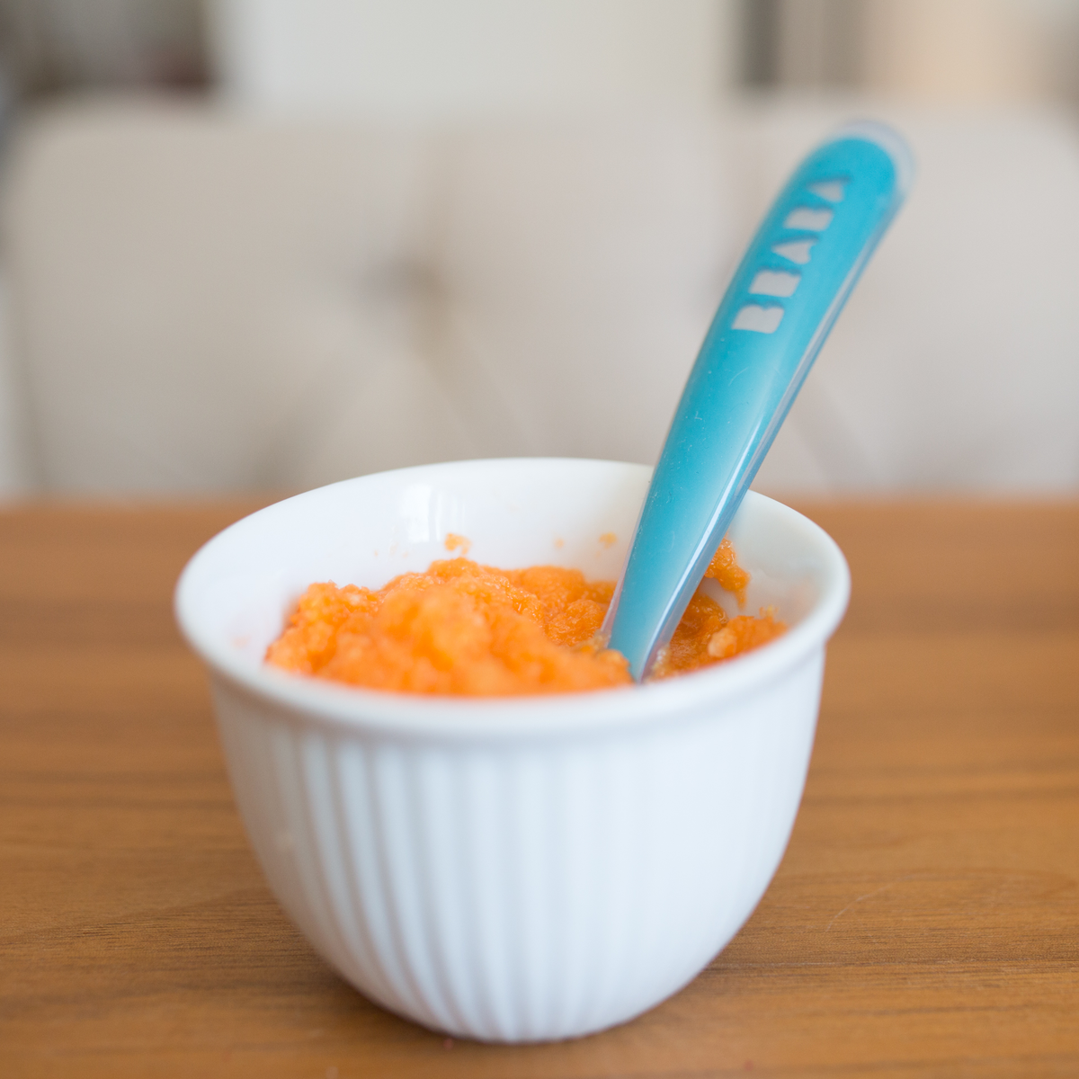 3. Пюрировать всю пищу для ребенка уже не надо. Но дробить все же придется: овощи можно измельчить вилкой, рыбу и мясо или порезать на кусочки, или разделить на волокна.