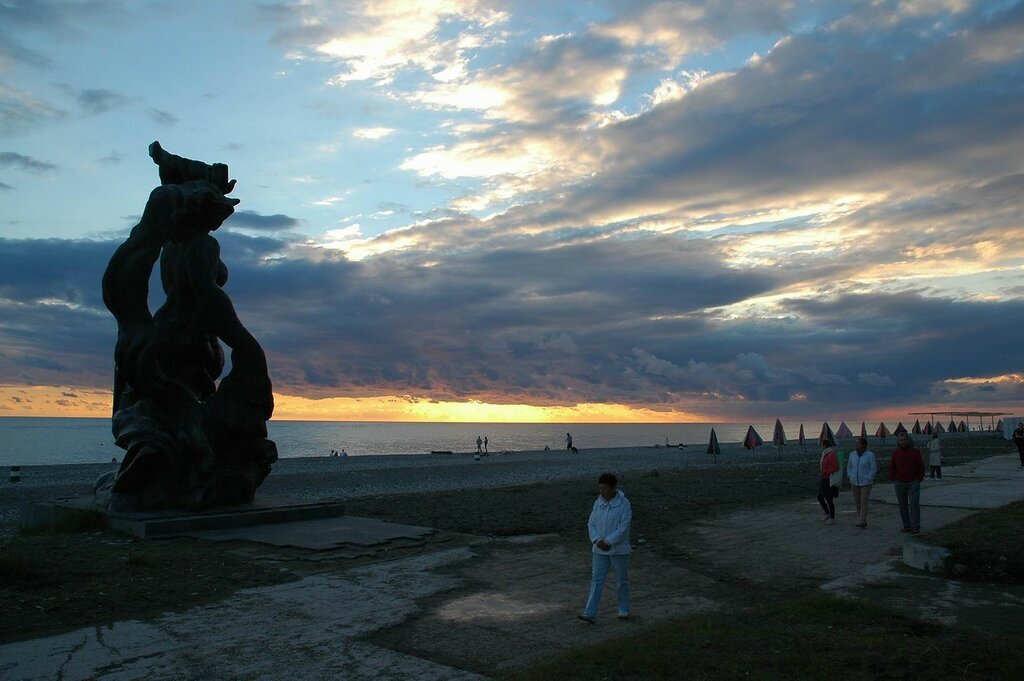 Следующим за Гагрой пунктом наших вылазок стала Пицунда. Это город-парк, расположенный на треугольном полуострове, считается лучшим курортом Абхазии благодаря сосновым лесам, спокойному морю и большому количеству санаториев. Пляжи здесь такие же галечные, как и везде, хотя ближе к соснам начинается песок. Наша прогулка заняла всего пару часов, но здесь вполне приятно провести и целый