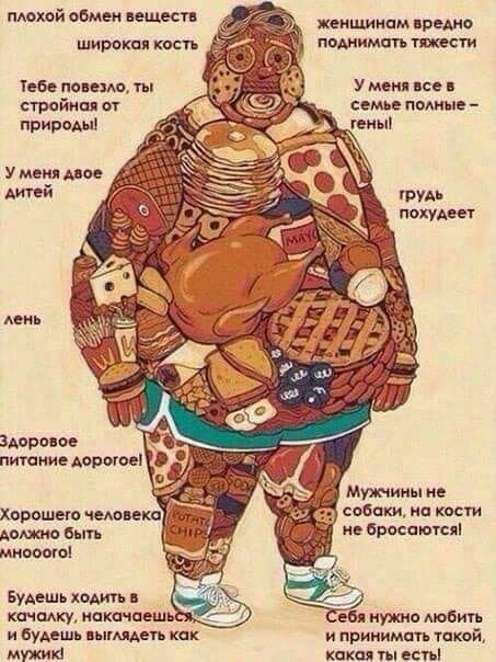 "У меня нет времени, у меня дети, я толстый, я ленивый, у меня нет спортивной одежды, в этом зале все манерные, а этот зал далеко, кость широкая и т.п."