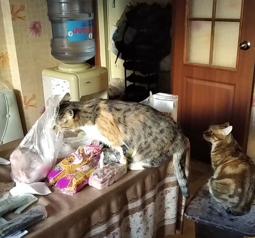 Кошка все время ищет съестное. Не потому что мало дают, а впрок. Каська лазает по столам и кухонным шкафам (она единственная кто может открыть дверки) и, если находит кусочек чего-то съедобного, обязательно утащит.