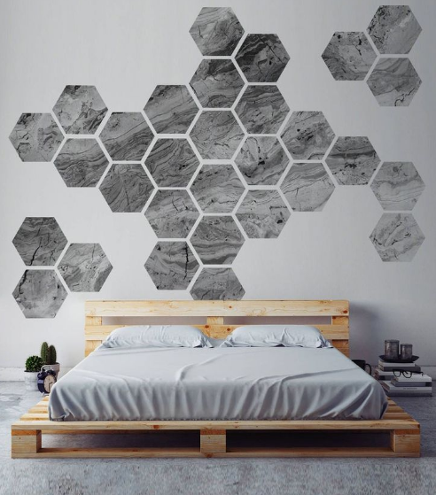 1. Оформление стены над кроватью керамической плиткой. Это позволит придать интерьеру необычность и выразительность.