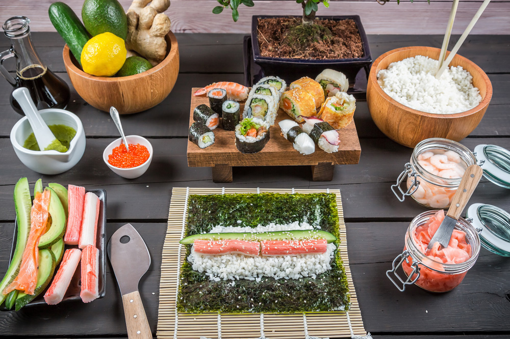 Суши роллы готовятся путем выбора определенных видов рыбы, которые отвечают самым высоким стандартам по содержанию жира цвета и вкуса. Шеф-повар суши отрубает небольшие кусочки рыбы и сочетает их со специями, такими как корень имбиря. Васаби и соевый соус обычно используются для ароматизации суши-роллов. Повара используют тип уксуса, который сделан из сброженного риса, чтобы приправить рис, который используется, чтобы окружить рыбу и специи. Конечный этап изготовления суши - это рулон, завернутый в нори.