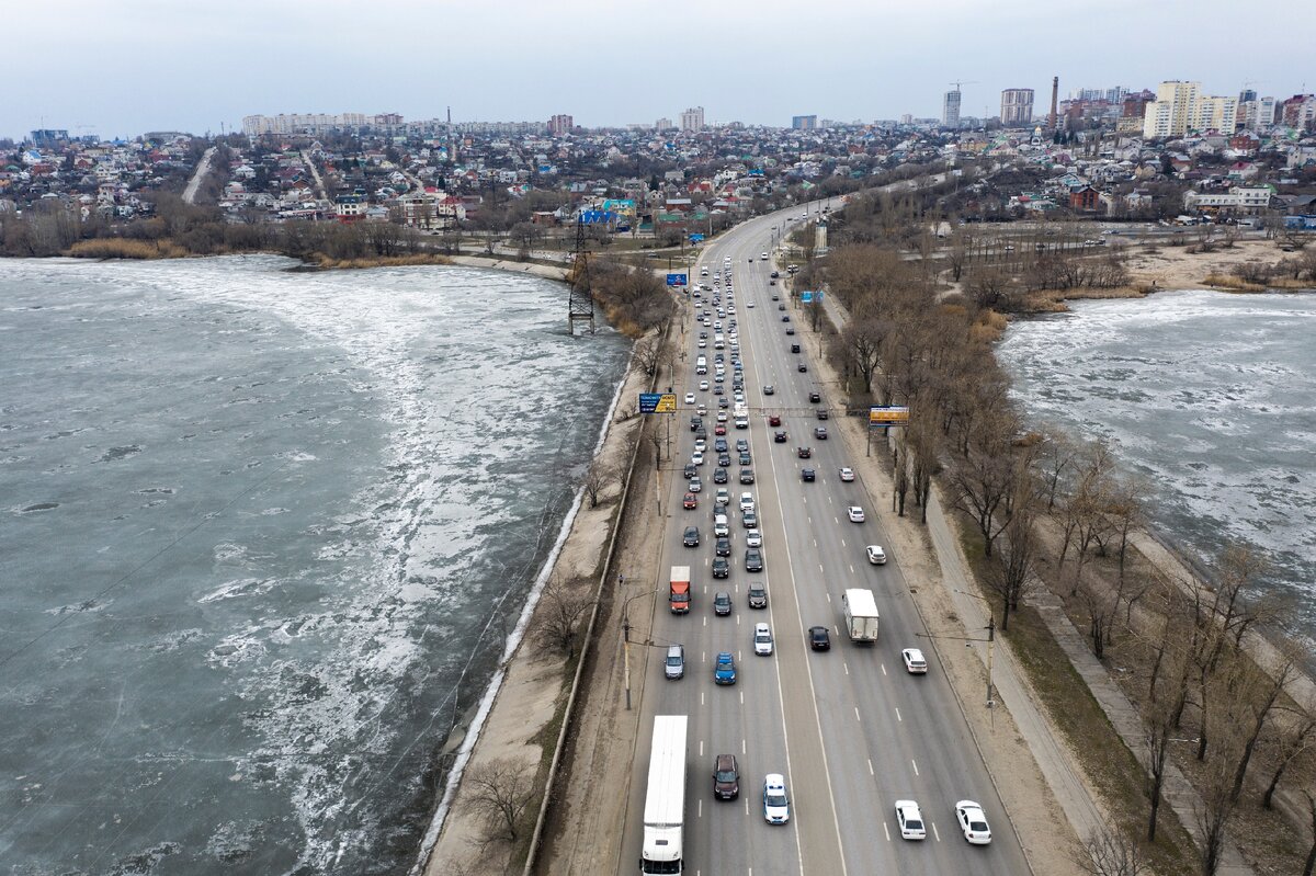 Наступило потепление и в пятницу вечером Воронеж как всегда встает в пробки.